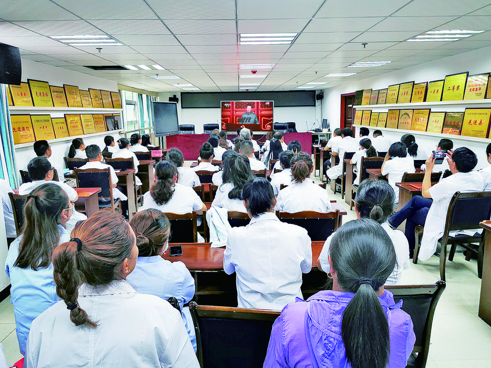 丹巴縣醫(yī)護人員集中觀看慶祝大會直播。