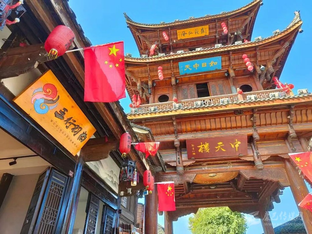 在南充古城閬中,以中天樓為核心鋪開的四條街道,全部被五星紅旗裝點開來,甚至部分街段上空鋪上了“紅旗海”。新城的主干道,也掛上了一面面五星紅旗,站在街頭放眼望去,鮮艷的五星紅旗成為一道最靚麗的風(fēng)景線。