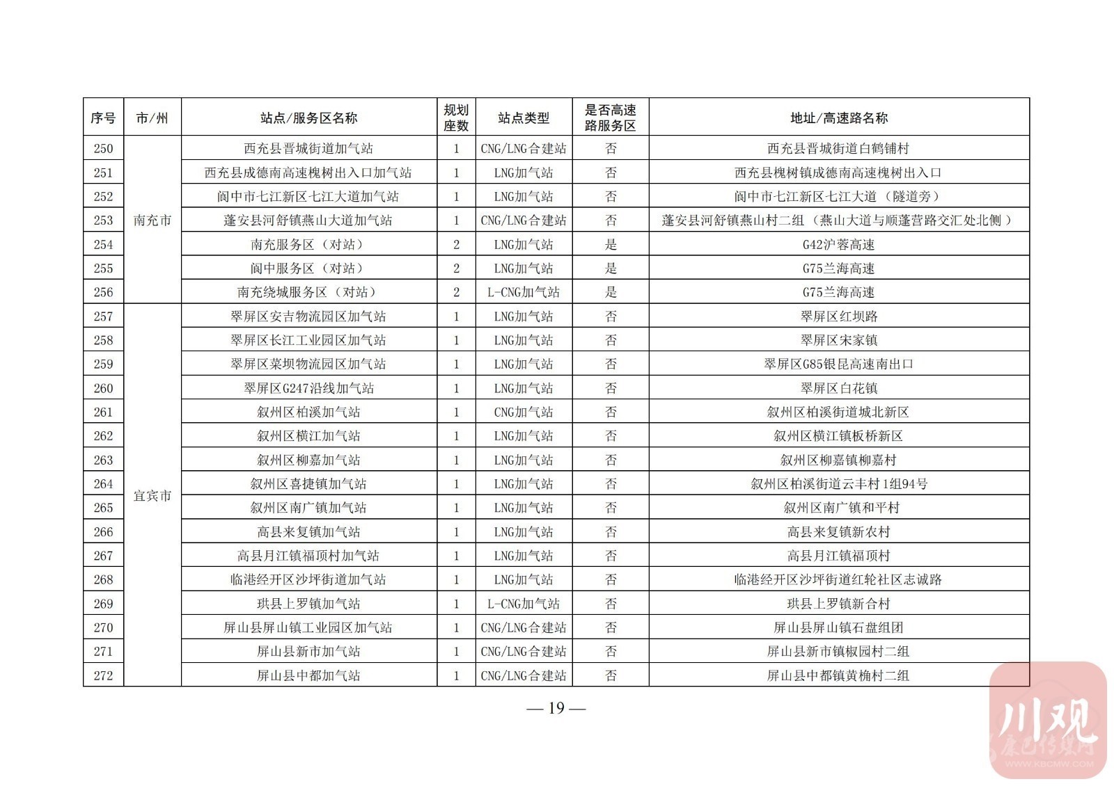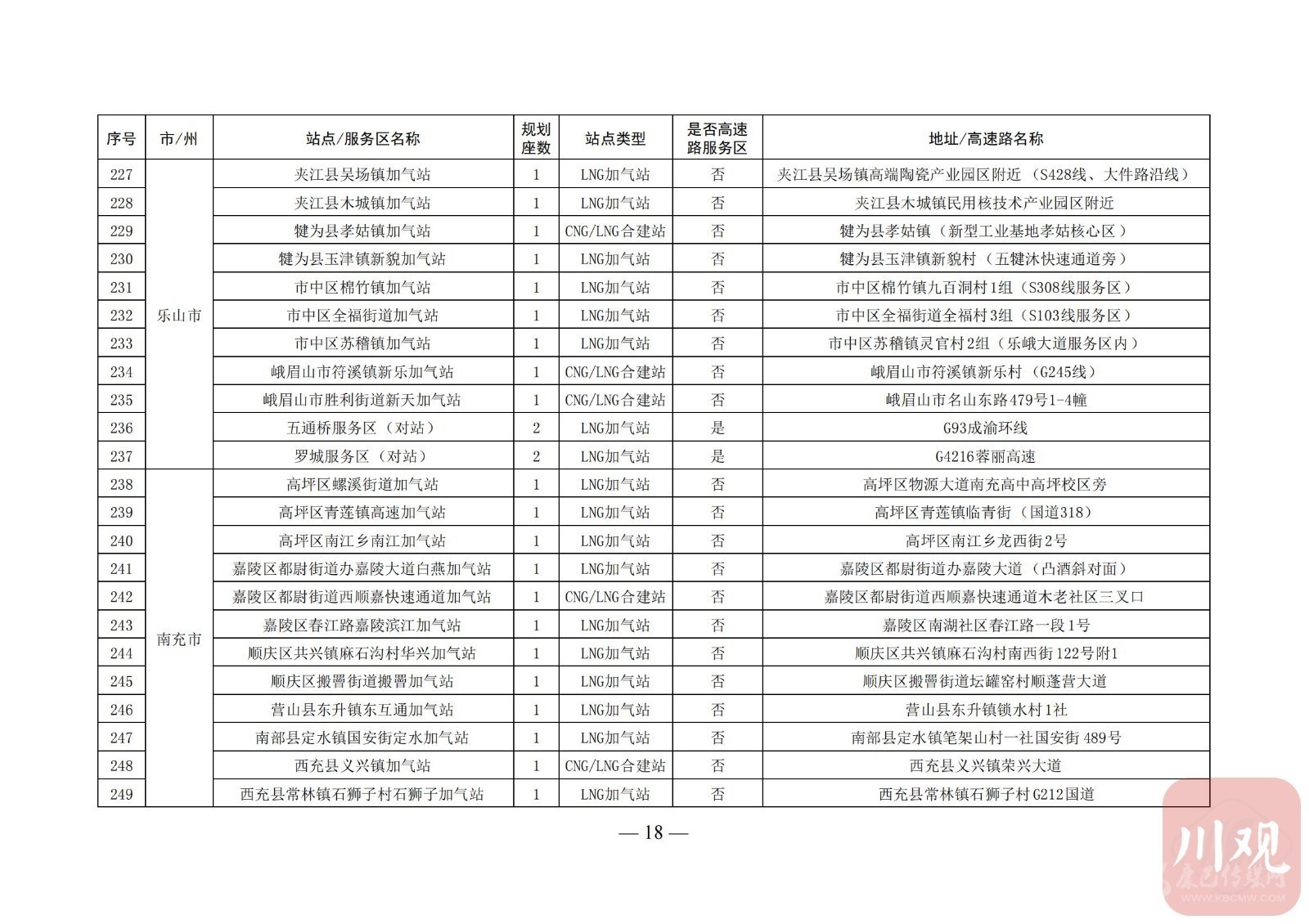 附:四川省天然氣汽車加氣站布局表