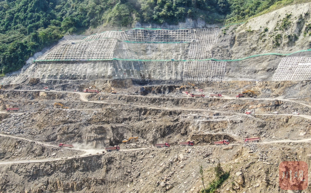 “四季度我們拿出了決戰(zhàn)的姿態(tài),加大了石料開采和運輸強度。挖掘機從之前8臺增加到13臺,重型卡車也保持在80輛至120輛之間,后面還將增加到150輛左右?!睋?jù)張鐸介紹,天氣好的時候,料場還要進(jìn)行夜間施工。