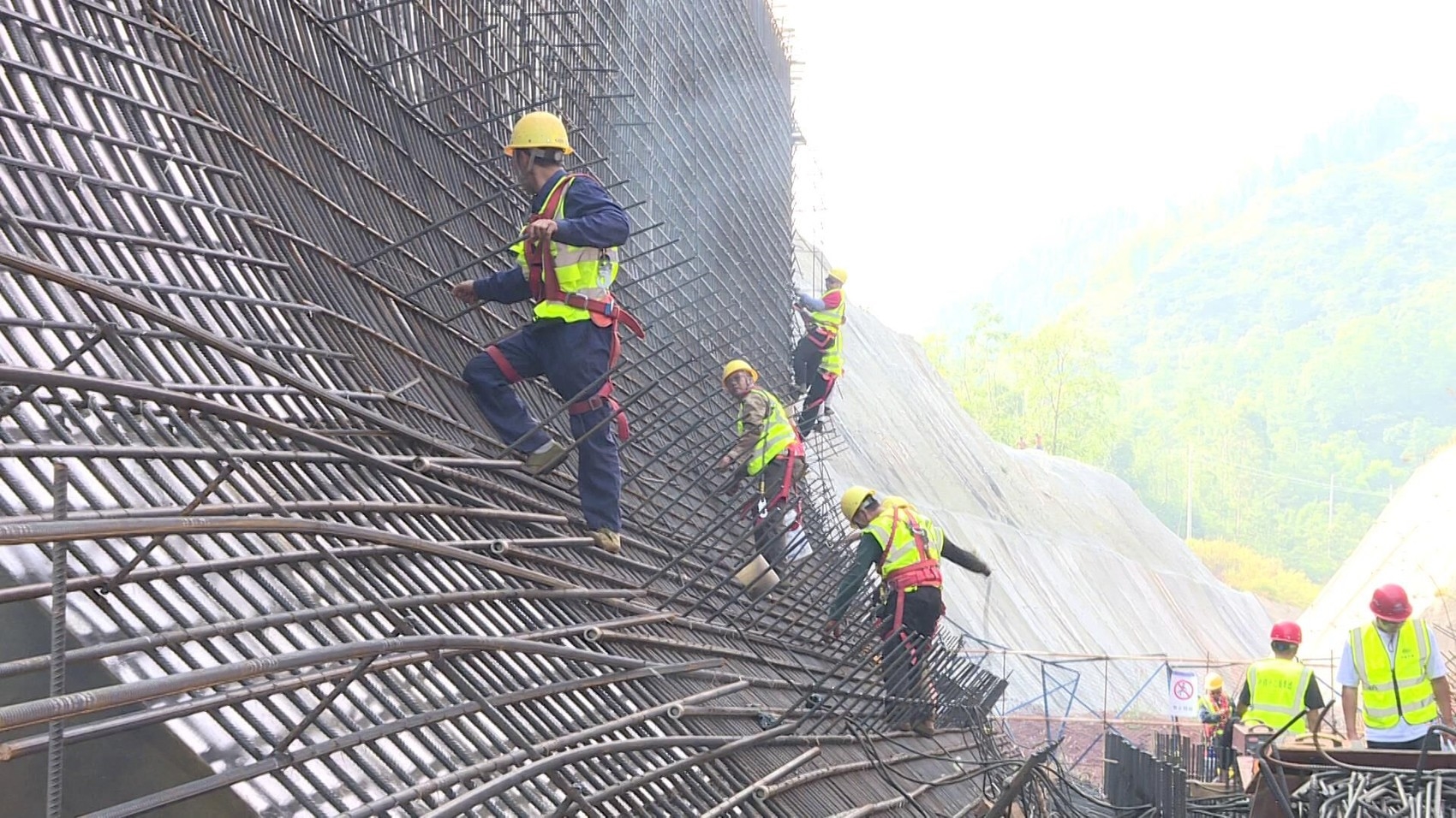 國慶節(jié)期間,在向家壩灌區(qū)北總干渠一期一步工程—大地灣渡槽項目施工點,工人正加緊對渡槽進(jìn)行鋼筋綁扎施工。 向家壩灌區(qū)公司 供圖