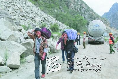 交通中斷后,過(guò)往人員只有步行通過(guò)受災(zāi)路段。