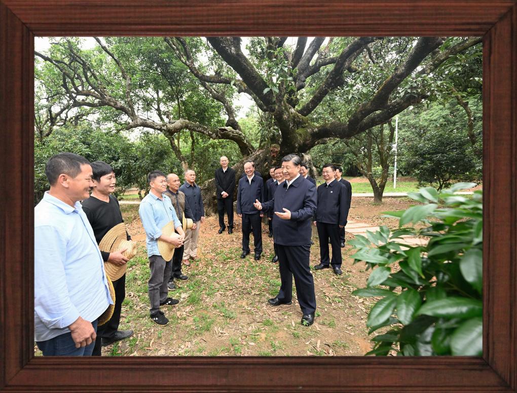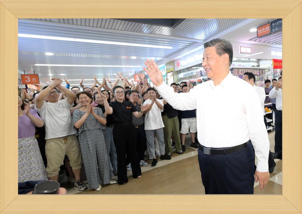 12月31日晚,國(guó)家主席習(xí)近平發(fā)表二〇二四年新年賀詞。 推近、定格、銘記,透過(guò)總書記身后書架上的一張張照片,我們記住過(guò)去,也對(duì)未來(lái)充滿信心。 不變的情懷 幾張老照片,在書架上擺放多年,人們已經(jīng)非常熟悉。 習(xí)近平同志青年時(shí)期的軍裝照,連續(xù)第3年出現(xiàn),擺放在書架醒目位置。 這令人不由得想起10年前的一段暖心對(duì)話—— 2013年11月,湖南十八洞村,村民石拔三老人見(jiàn)到了來(lái)此考察的習(xí)近平總書記。 “怎么稱呼您?”“我是人民的勤務(wù)員?!?/p> 歲月流轉(zhuǎn),初心不改。從照片上的青年,到人民的勤務(wù)員,“我將無(wú)我,不負(fù)人民”的赤子情懷始終如一。 家庭是個(gè)人溫馨的港灣。習(xí)近平同志一家三口和父親習(xí)仲勛在一起、習(xí)近平同志在福州時(shí)帶女兒玩的照片,自總書記第一次發(fā)表新年賀詞以來(lái),就一直擺在書架上。 2023年,又有幾張新的總書記家庭照片映入眼簾。 一張是習(xí)仲勛同志的單人照。 2023年是習(xí)仲勛同志誕辰110周年。習(xí)近平總書記從小深受父親影響,形容父親“像一頭老黃牛,為中國(guó)人民默默地耕耘著”,“這也激勵(lì)著我將自己的畢生精力投入到為人民群眾服務(wù)的事業(yè)中,報(bào)效養(yǎng)育我的錦繡中華和父老鄉(xiāng)親”。 同夫人彭麗媛在深圳錦繡中華景區(qū)的留影、習(xí)近平夫婦懷抱女兒的合影,也是第一次出現(xiàn)在書架上。 天下之本在家。習(xí)近平總書記指出,家庭和睦則社會(huì)安定,家庭幸福則社會(huì)祥和,家庭文明則社會(huì)文明。 修身、齊家,家好、國(guó)更好。習(xí)近平總書記率先垂范,對(duì)家人的責(zé)任、對(duì)家風(fēng)的傳承、對(duì)家教的認(rèn)真令人動(dòng)容。 不停的步履 11張2023年拍攝的照片,留下習(xí)近平總書記過(guò)去一年治國(guó)理政的經(jīng)典瞬間。 2023年,習(xí)近平總書記共進(jìn)行了16次國(guó)內(nèi)考察,出訪4次,在國(guó)內(nèi)數(shù)十次會(huì)晤到訪的各國(guó)各界人士。 將鏡頭拉遠(yuǎn),總書記的身影不辭萬(wàn)里—— 向南,習(xí)近平總書記來(lái)到位于我國(guó)大陸最南端的廣東省湛江市徐聞縣;向北,考察中國(guó)最北端的黑龍江省漠河市北極村;向西,視頻連線守衛(wèi)祖國(guó)西大門的新疆軍區(qū)紅其拉甫邊防連執(zhí)勤哨所。 這張同紅其拉甫邊防連執(zhí)勤哨所等進(jìn)行視頻通話的拼版照片,正是書架上的新照片之一。 “黃河九曲、長(zhǎng)江奔流,總讓人心潮澎湃、豪情滿懷?!?023年,長(zhǎng)江流經(jīng)的11個(gè)省市里,習(xí)近平總書記考察了4個(gè);黃河沿線的9個(gè)省區(qū)里,考察了5個(gè);大運(yùn)河涉及的8個(gè)省市里,考察了5個(gè)。 北瀕長(zhǎng)江、南臨廬山、東枕鄱湖,江西九江的中國(guó)石化九江分公司位置特殊。10月,習(xí)近平總書記來(lái)到這里時(shí),員工們圍攏過(guò)來(lái)紛紛向總書記問(wèn)好。 總書記親切地說(shuō),希望你們按照黨中央對(duì)新型工業(yè)化的部署要求,堅(jiān)持綠色、智能方向,扎扎實(shí)實(shí)、奮發(fā)進(jìn)取,為保障國(guó)家能源安全、推動(dòng)石化工業(yè)高質(zhì)量發(fā)展作出新貢獻(xiàn)。 “追求卓越 勇創(chuàng)一流”——墻上的標(biāo)語(yǔ)仿佛大家的回應(yīng)。這一幕,也被相機(jī)定格。 將鏡頭推近,總書記的關(guān)切無(wú)微不至—— 這是對(duì)生產(chǎn)的關(guān)心。 萬(wàn)畝甘蔗林中,習(xí)近平總書記同身著民族服裝的蔗農(nóng)走在一起,大家的笑容像甘蔗一樣甜。總書記“為保障國(guó)家糖業(yè)安全、促進(jìn)蔗農(nóng)增收致富發(fā)揮更大作用”的叮嚀深入人心。 古老荔枝樹(shù)下,總書記同現(xiàn)場(chǎng)技術(shù)人員親切交流,指出要著力做好“土特產(chǎn)”文章,以產(chǎn)業(yè)振興促進(jìn)鄉(xiāng)村全面振興。 這是對(duì)企業(yè)的關(guān)注。 9月,習(xí)近平總書記來(lái)到浙江義烏國(guó)際商貿(mào)城考察,人們紛紛從商鋪中走出來(lái),掌聲、問(wèn)候聲、歡呼聲此起彼伏。 面對(duì)商戶、小企業(yè)主們,總書記點(diǎn)贊道:“義烏小商品闖出了大市場(chǎng)、做成了大產(chǎn)業(yè),走到這一步很了不起,每個(gè)人都是參與者、建設(shè)者、貢獻(xiàn)者?!?/p> 這是對(duì)人民的關(guān)懷。 2023年,華北、黃淮等地出現(xiàn)極端降雨,引發(fā)洪澇和地質(zhì)災(zāi)害。 北方入冬之際,習(xí)近平總書記來(lái)到北京、河北受災(zāi)較重的相關(guān)地區(qū),看望慰問(wèn)受災(zāi)群眾。書架上這張照片,便是總書記在北京門頭溝妙峰山鎮(zhèn)水峪嘴村考察時(shí)留下的。 一度被洪水淹沒(méi)的水峪嘴村已經(jīng)修葺一新,村民家中窗明幾凈、暖氣充足。 少年兒童的成長(zhǎng),習(xí)近平總書記一直牽掛在心,書架上多次出現(xiàn)總書記同孩子們?cè)谝黄鸬膱?chǎng)景。 2023年精選的,是一張習(xí)近平總書記在北京育英學(xué)校的照片。 看到孩子們正在學(xué)生農(nóng)場(chǎng)勞動(dòng),總書記關(guān)心地說(shuō):“希望同學(xué)們從‘學(xué)農(nóng)’中感受到農(nóng)作的艱辛和農(nóng)民的不易,從小養(yǎng)成熱愛(ài)勞動(dòng)、珍愛(ài)糧食、尊重自然的良好習(xí)慣,為建設(shè)美麗中國