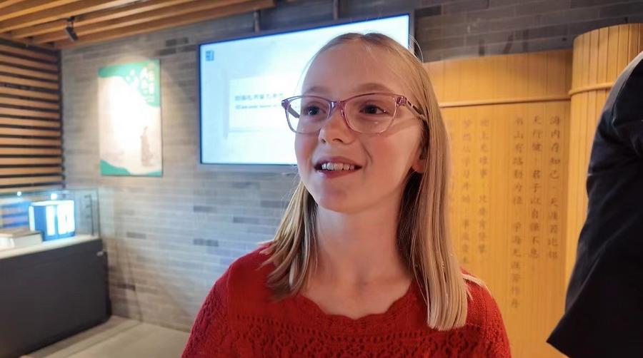??“我很喜歡中國,因?yàn)橹袊娴暮芸?!”美國猶他州卡斯卡德小學(xué)學(xué)生米麗婭姆·居布萊能講一口流利的中文。