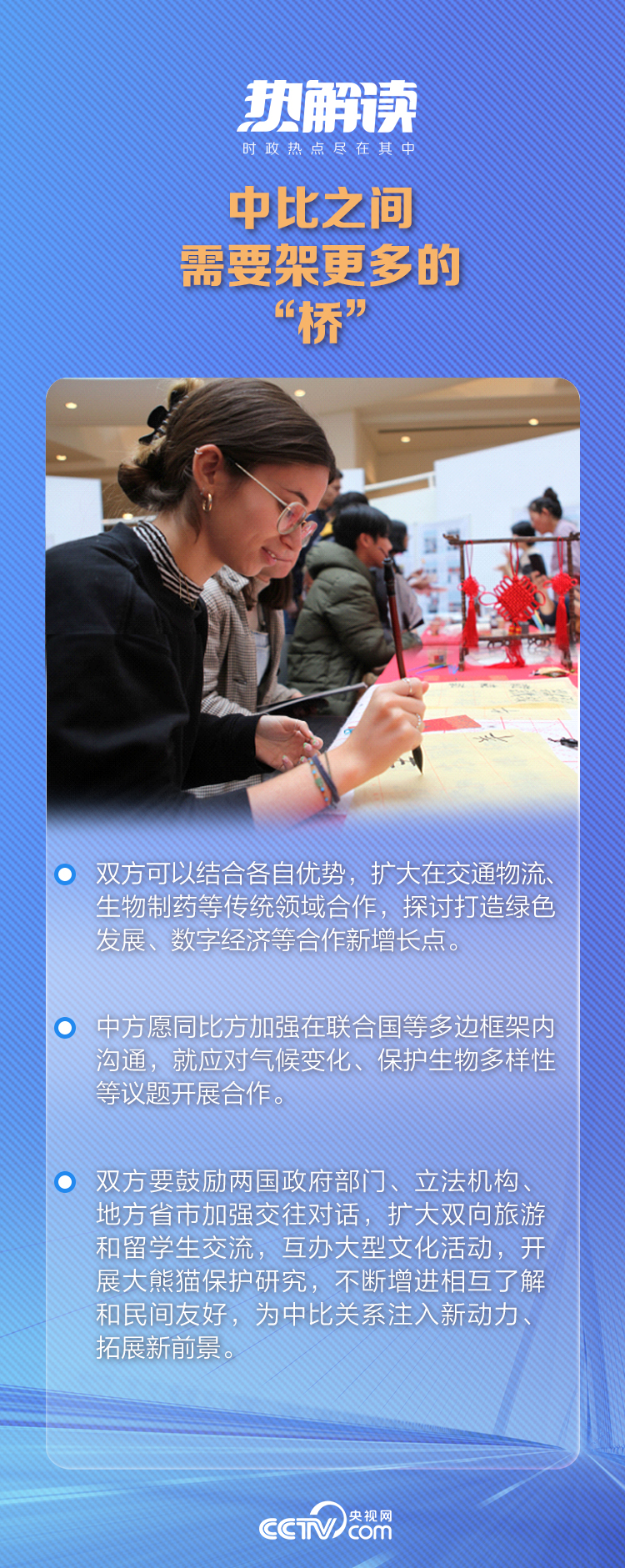 剛剛過去的一年,中比經(jīng)貿(mào)合作也不斷取得新成果,在農(nóng)食產(chǎn)品對華出口、民航服務(wù)、綠色發(fā)展、應(yīng)對氣候變化等議題上共識和合作不斷擴大,超過80個中方團組訪問比利時。教育、科技、文化交流以及地方省市的友好交往促進了兩國民心相通。