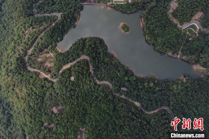 航拍鏡頭下的廣州市白江湖森林公園?!£惓t 攝
