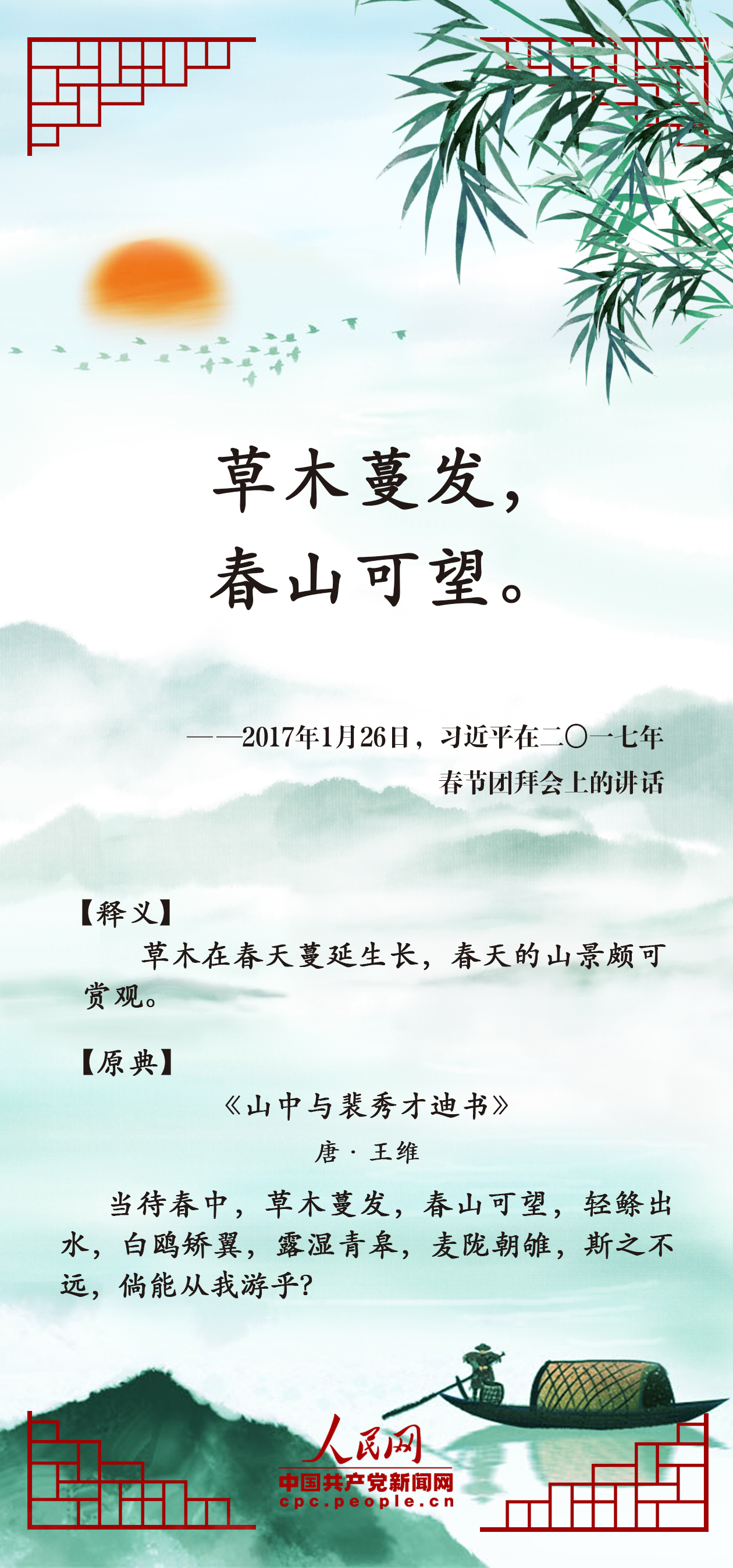 春是新的開始,是萬物生發(fā)、欣欣向榮的美好時(shí)節(jié)。習(xí)近平總書記曾多次引經(jīng)據(jù)典,用詩文名句展現(xiàn)生機(jī)盎然的春天景象。一年之計(jì)在于春,一起領(lǐng)會(huì)中華傳統(tǒng)文化的深刻內(nèi)涵,凝聚蓬勃向上的發(fā)展之力。