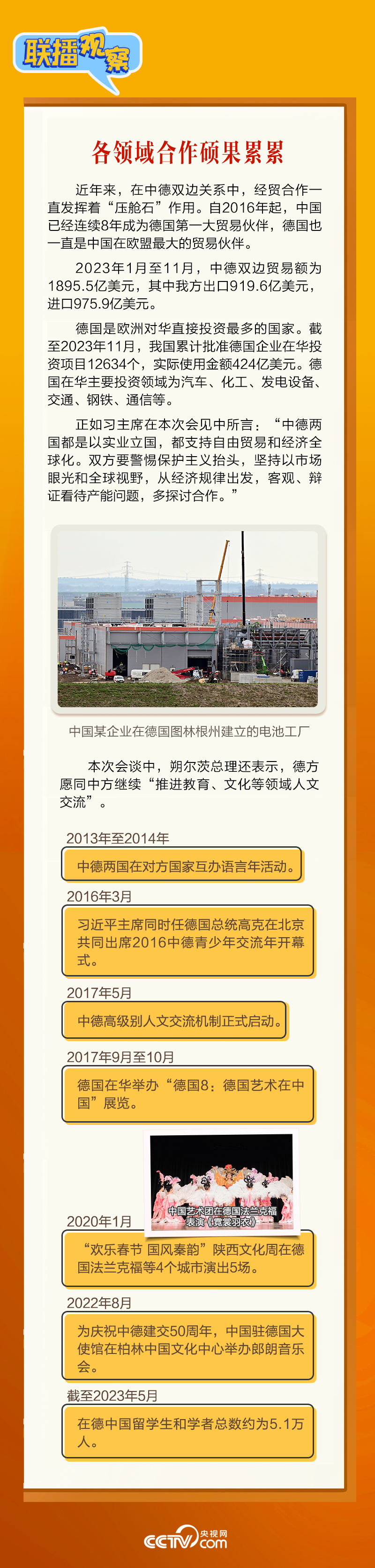 4月16日上午,習(xí)近平主席在北京釣魚臺(tái)國(guó)賓館會(huì)見朔爾茨總理。會(huì)見中,習(xí)主席強(qiáng)調(diào),要“牢牢把握中德是全方位戰(zhàn)略伙伴這一定位”。中德建立全方位戰(zhàn)略伙伴關(guān)系10年來(lái),兩國(guó)如何共同發(fā)展,相互成就?央視網(wǎng)《聯(lián)播觀察》帶您了解。