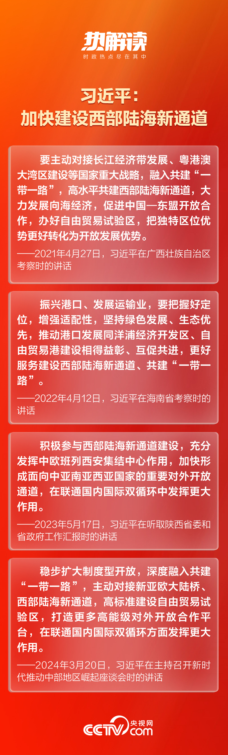 總書記一直對這條通道的建設(shè)十分關(guān)切。近年來,總書記在貴州、陜西、廣西等西部陸海新通道沿線省區(qū)考察時(shí),多次對高水平共建西部陸海新通道作出重要指示。
