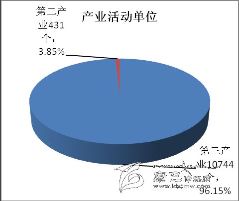 在法人單位中,第二產(chǎn)業(yè)占3.85%,比2008年末下降了0.31個百分點;第三產(chǎn)業(yè)占96.15%,提高了0.31個百分點。第二產(chǎn)業(yè)法人單位從業(yè)人員占全部法人單位從業(yè)人員的11.14%,比2008年末下降了1.05個百分點;第三產(chǎn)業(yè)法人單位從業(yè)人員占88.86%,提高了1.05個百分點。