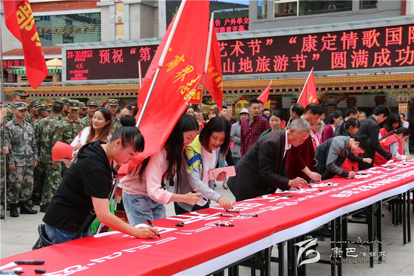 本網(wǎng)訊(記者 宋志勇 文/圖)8月5日,由州文明辦、州直工委、康定市文明辦共同舉行的康定地區(qū)迎“康巴藝術(shù)節(jié)”爭當(dāng)文明市民簽名暨志愿服務(wù)活動在情歌廣場正式拉開帷幕。來自康定地區(qū)社會各界的青年志愿者服務(wù)隊(duì)、巾幗志愿者服務(wù)隊(duì)、工商界志愿者服務(wù)隊(duì)、衛(wèi)生系統(tǒng)志愿者、駐康部隊(duì)志愿者服務(wù)隊(duì)、州級機(jī)關(guān)志愿者服務(wù)隊(duì)、市直機(jī)關(guān)志愿者服務(wù)隊(duì)、環(huán)衛(wèi)志愿者服務(wù)隊(duì)等共計(jì)1000余人參與。