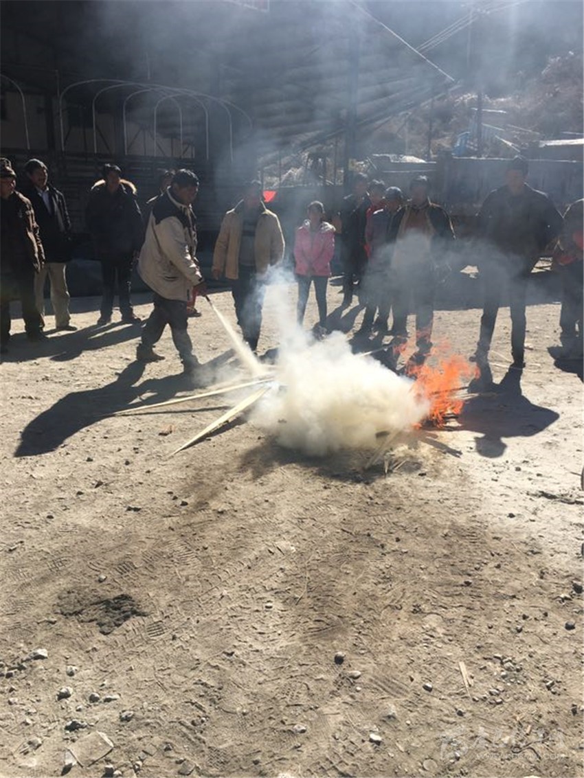 本網(wǎng)訊(何才華 文/圖)“滅火器使用時(shí),要先除掉鉛封、拔掉保險(xiǎn)銷,左手握噴管、右手提壓把,在距離火焰兩米左右的地方用右手用力壓下壓把……”12月15日,鄉(xiāng)城縣香巴拉鎮(zhèn)集中為該鎮(zhèn)9村534戶群眾集中發(fā)放滅火器時(shí),鎮(zhèn)長羅斌用藏語耐心地向村民講解滅火器的使用方法。