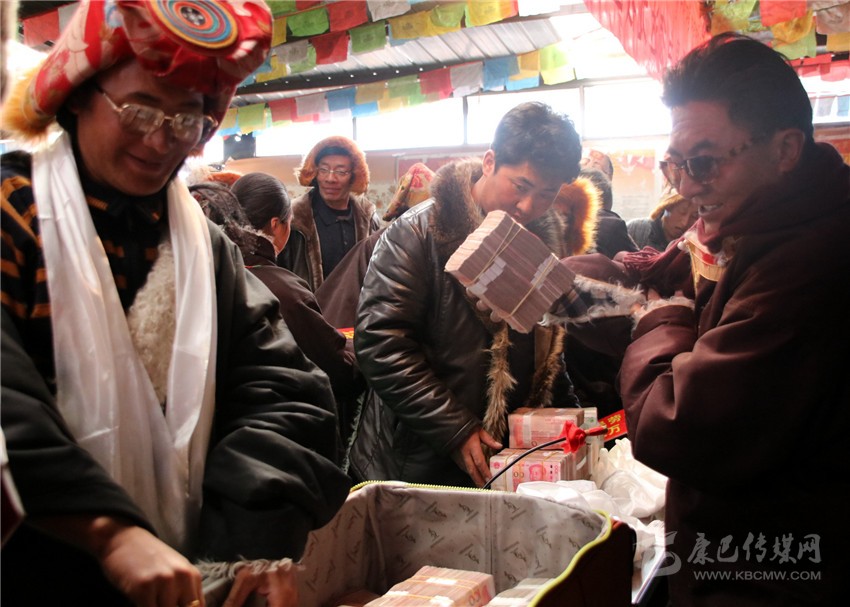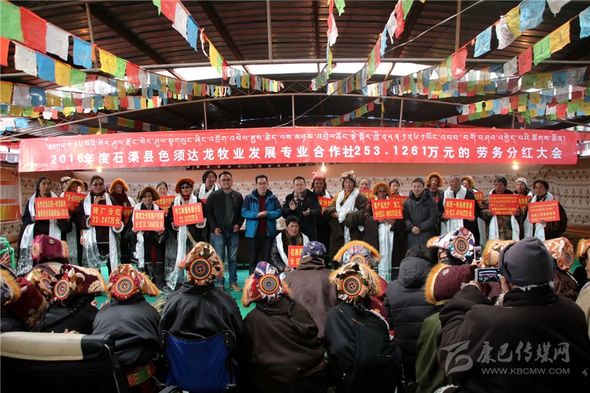 本網(wǎng)訊(刁海瀚 文/圖)日前,在海拔4500米的石渠縣色須鎮(zhèn)紅旗一村村民活動中心院內(nèi),色須鎮(zhèn)達攏合作社將253萬余元年底分紅分派給了263個牧民家庭,其中,建檔立卡貧困戶達70戶。