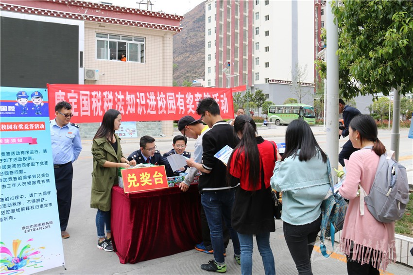 本網(wǎng)訊(吳海波 記者 張嗥)購物時商家不給發(fā)票,可以打哪個電話進行投訴?增值稅納稅人分為哪幾類?”這一系列與生活息息相關(guān)的稅法知識有獎答題,引來了眾多四川民族學院同學的熱情參與。420 日,康定市稅法宣傳月活動持續(xù)升溫,稅法宣傳首次走進高等院校。
