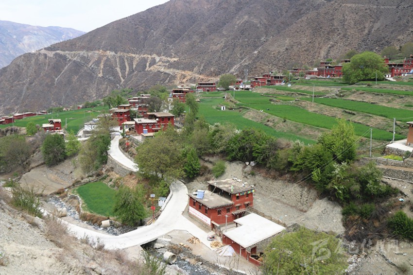 高山深谷之中,青稞翠綠、鳥語花香。蜿蜒的通村硬化路將四五個自然村落連成一片,整潔的聯(lián)戶路將一棟棟紅色藏房綴成了幾個小圈,仿佛是經(jīng)過精心擺放的紅瑪瑙項鏈;太陽能路燈錯落有致,點綴在平坦寬闊的水泥村道上,與兩旁漂亮的紅藏房相得益彰,顯得特別賞心悅目;村中心的交叉路口,幾名群眾正忙著給新建的青稞面粉加工廠房安裝設備;村民活動室里,幾名村干部正在討論農(nóng)民夜校的事情;在房前屋后土地上,隨處可見頂著烈日勞作的群眾,他們有的在為青稞除草,有的在為豌豆施肥,還有的在檢查著自家的野生蜜蜂蜂箱……