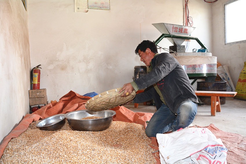 事實上,小作坊的準(zhǔn)確名稱是仁果下村電磨坊合作社,屬于村里的集體經(jīng)濟(jì),廠房的建設(shè)、機(jī)器的購買都來源于扶貧專項資金。建成后,合作社提供崗位,讓村里的貧困戶來操作運(yùn)營。于是,洛桑降措成為了這里的“主人”。