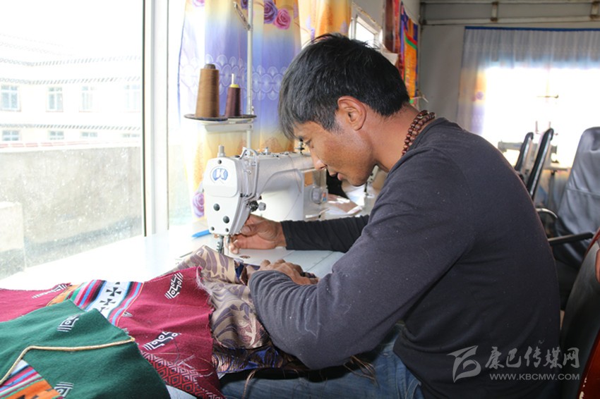 在白玉縣阿察鎮(zhèn)街上,有一處很不起眼的服裝加工店,店里擺放著各色質(zhì)地考究的服裝面料和時(shí)尚的藏族服裝。白玉縣祥陽(yáng)措青年悅民族服飾商貿(mào)有限責(zé)任公司經(jīng)理在熱是納塔鄉(xiāng)納塔村的牧民,他穿著自己生產(chǎn)的藏裝,在工作室里,看到牧民或操作縫紉機(jī)、或用手工精心制作藏裝,他露出了開(kāi)心的笑容。他一再叮囑員工,一定要仔細(xì),要拿出最好的本事,用一流的技藝,不僅要讓顧客滿意,還要打出公司的服裝品牌,質(zhì)量是公司和員工的立身之本。