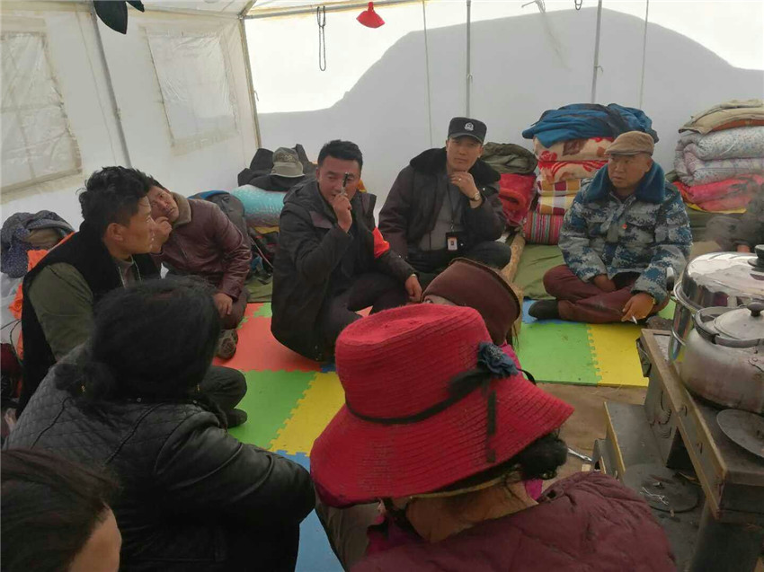 “臨時(shí)黨支部就在山上,你們有什么困難,需要解決的及時(shí)問題都可以找支部、找黨員。要進(jìn)一步領(lǐng)會(huì)《理塘縣蟲草采集管理處罰規(guī)定》,不做與規(guī)定相違背的事,和諧相處,共同建設(shè)和諧穩(wěn)定的蟲草采集區(qū)。黨和國家為我們創(chuàng)造了和諧穩(wěn)定的社會(huì)環(huán)境,作為新時(shí)代的農(nóng)民,要樹立感恩意識(shí),通過保護(hù)生態(tài)環(huán)境、強(qiáng)化環(huán)境衛(wèi)生整治等行動(dòng),彰顯新時(shí)代農(nóng)民精神?!蹦岈敐扇式Y(jié)合當(dāng)前工作繼續(xù)說到。