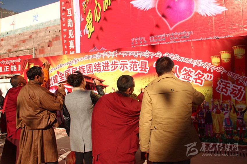 其實(shí),在白玉,像澤稱(chēng)降措這樣感人肺腑的故事絕非個(gè)案。采訪中,筆者細(xì)細(xì)梳理五年來(lái)白玉的創(chuàng)建舉措與成績(jī),完全可以用“務(wù)實(shí)”“扎實(shí)”這四個(gè)字來(lái)形容。自2014年創(chuàng)建活動(dòng)啟動(dòng)以來(lái),縣委、縣政府嚴(yán)格按照“三年創(chuàng)建、四年提升”要求,緊扣“八進(jìn)活動(dòng)、共建對(duì)子”兩個(gè)關(guān)鍵,聚焦“民族團(tuán)結(jié)促發(fā)展、民族團(tuán)結(jié)促穩(wěn)定、民族團(tuán)結(jié)促民生”三大目標(biāo),采取“精準(zhǔn)安排、精準(zhǔn)施策、精心打造、精細(xì)管理”四項(xiàng)舉措,并通過(guò)層層簽訂目標(biāo)責(zé)任書(shū)和層層落實(shí)創(chuàng)建標(biāo)準(zhǔn)、測(cè)評(píng)指標(biāo),進(jìn)而形成了“黨委統(tǒng)一領(lǐng)導(dǎo)、黨政齊抓共管、部門(mén)各司其職、社會(huì)廣泛參與”的創(chuàng)建工作格局;采取“年度定方案、季度有督查、月月抓推進(jìn)、層層重落實(shí)”的方式,通過(guò)召開(kāi)專(zhuān)題會(huì)、動(dòng)員會(huì)、現(xiàn)場(chǎng)會(huì)、督導(dǎo)會(huì)、匯報(bào)會(huì)等形式,抓問(wèn)題、添措施、促整改、補(bǔ)短板、求提升,一系列動(dòng)真碰硬的推進(jìn),使得創(chuàng)建工作由“虛”變“實(shí)”;按照“精準(zhǔn)宣講、掛圖作戰(zhàn)、對(duì)單宣講、對(duì)村消號(hào)、定學(xué)式”的宣講思路,采取“縣到鄉(xiāng)、鄉(xiāng)進(jìn)村、村入戶(hù)、寺廟與僧尼”四個(gè)面對(duì)面等方式,并結(jié)合常態(tài)化開(kāi)展的“四下鄉(xiāng)”活動(dòng),廣泛學(xué)習(xí)宣傳黨的民族理論、宗教政策、法律法規(guī)以及各項(xiàng)惠農(nóng)惠民政策。五年來(lái),全縣累計(jì)出動(dòng)宣講服務(wù)人員1180人次,開(kāi)展宣講宣教、“四下鄉(xiāng)”活動(dòng)以及民族團(tuán)結(jié)“八進(jìn)”活動(dòng)多達(dá)988場(chǎng)次,覆蓋基層干部、農(nóng)牧民群眾和及寺廟近8萬(wàn)人次,發(fā)放各類(lèi)宣傳資料2.3萬(wàn)余份、圖書(shū)光盤(pán)4500余本(張),贈(zèng)送各種書(shū)籍4130余冊(cè),放映電影152場(chǎng)次;在主要街道、繁華路段、出租車(chē)頂屏、燈箱燈桿以及干線公路沿線堡坎,設(shè)置LED屏、宣傳牌、滾動(dòng)標(biāo)語(yǔ)和墻體標(biāo)語(yǔ),推送各類(lèi)創(chuàng)建信息上萬(wàn)余條,在各機(jī)關(guān)、單位、醫(yī)院、學(xué)校、寺廟、鄉(xiāng)鎮(zhèn)、村組(社區(qū))設(shè)置民族團(tuán)結(jié)標(biāo)語(yǔ)、宣傳櫥窗、展板和文化墻,推出各類(lèi)宣傳欄2145個(gè)、宣傳展板 435個(gè);在縣級(jí)宣傳平臺(tái)開(kāi)設(shè)專(zhuān)欄,完成各類(lèi)主題宣傳300余場(chǎng)次;舉辦創(chuàng)建“萬(wàn)人簽名”、鍋莊節(jié)、演講比賽、籃球友誼賽、知識(shí)競(jìng)賽、文藝演出等各類(lèi)民族團(tuán)結(jié)主題活動(dòng)近20場(chǎng),實(shí)現(xiàn)了創(chuàng)建宣講宣傳宣教全方位、多層面、立體式和廣覆蓋;切實(shí)將民族團(tuán)結(jié)工作與脫貧攻堅(jiān)、基層黨建、群眾工作、鄉(xiāng)村治理、依法治縣等有機(jī)結(jié)合,大力開(kāi)展干群結(jié)對(duì)認(rèn)親、干部聯(lián)寺聯(lián)僧、支部共建共創(chuàng)以及警民共建等活動(dòng);切實(shí)在廣大農(nóng)牧民群眾、幫扶援建隊(duì)伍、宗教寺院、學(xué)校師生、企業(yè)以及部隊(duì)中發(fā)現(xiàn)典型、宣傳典型,進(jìn)而在全縣上下形成了“學(xué)先進(jìn)、趕先進(jìn)、當(dāng)標(biāo)兵”的濃厚氛圍;采取政策傾斜、整合項(xiàng)目、配套資金等措施,狠抓示范點(diǎn)規(guī)范化建設(shè)。目前,全縣所有鄉(xiāng)(鎮(zhèn))、縣級(jí)黨政機(jī)關(guān)、武警部隊(duì),45%以上的村(社區(qū))、企事業(yè)單位和寺廟已成為民族團(tuán)結(jié)進(jìn)步示范地區(qū)或示范單位;……精準(zhǔn)發(fā)力、持續(xù)給力的創(chuàng)建活動(dòng),有效形成了創(chuàng)建活動(dòng)“人人參與、人人推動(dòng)、人人負(fù)責(zé)、人人共享”的喜人局面。