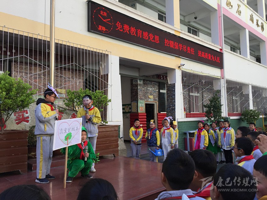 本網(wǎng)訊 為喚起植樹造林、綠化環(huán)境、美化生活的共同意識(shí),養(yǎng)成低碳環(huán)保生活習(xí)慣。近日,丹巴縣城區(qū)小學(xué)校利用周一國(guó)旗下講話為契機(jī),用小品的形式,開展植樹造林活動(dòng)宣傳。