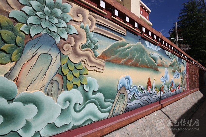 當(dāng)筆者一行走在巴塘縣城,墻體繪畫上“巴塘八景”躍然于上,“巴山積雪”“柳林較射”“桃園賞花”“板橋垂釣”“古桑抱石”“溫泉沐浴”“暖石回陽”“老柳夾槐”色彩豐富、構(gòu)思精巧,平淡無奇的墻面因?yàn)橐环r活的繪畫變得生活,一面墻一幅畫一個(gè)故事。街頭巷尾,十字路口的“大鵬蓮花燈”“九眼天珠燈”“走馬燈”高高懸掛展示巴塘風(fēng)貌。以“茶馬古道”為主題打造的“最美古鎮(zhèn)”,悠悠古韻講巴塘故事,古色古香顯巴塘韻味……