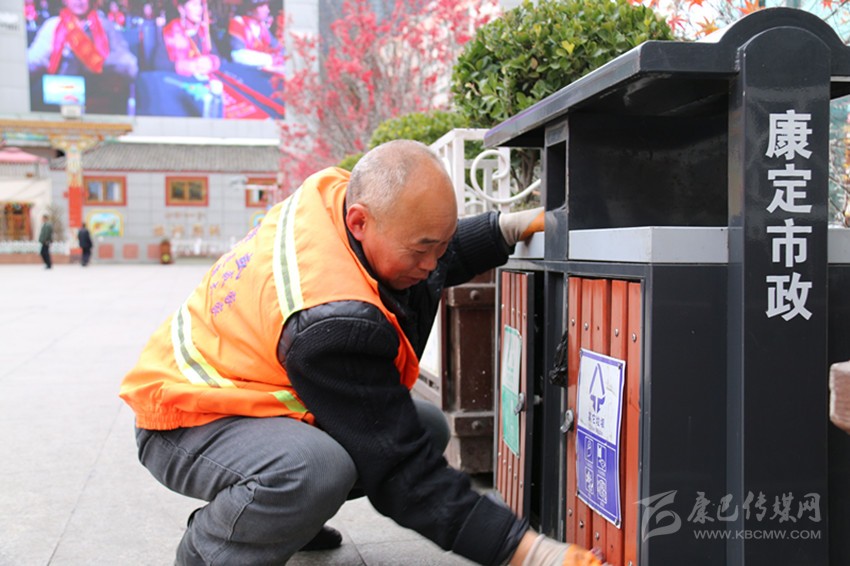 康定的街頭,在匆忙的人群中,那些身著橘黃色保潔服的環(huán)衛(wèi)工人隨處可見。在溜溜城步行街,他們揮動(dòng)著掃帚,掃起果皮、紙屑;在情歌廣場(chǎng),他們拿著抹布一遍一遍地擦拭著垃圾桶;在彩虹橋垃圾收集站點(diǎn),他們將垃圾桶里的垃圾裝上壓縮車,運(yùn)往垃圾處理廠……
