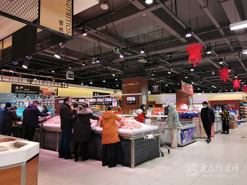 在二樓的豬肉供應攤點,康定冷鏈凍制品有限責任公司積極響應政府的號召,為了讓市民能夠買到放心的新鮮豬肉,1月30日,該公司門店冷鏈生鮮肉業(yè)共計屠宰了4頭生豬,該公司職員告訴記者,疫情期間,豬源供應緊張,并且要經過層層檢疫才能進入市場,但是公司仍然積極尋找豬源,保證疫情期間的豬肉供應,所以即便是到了下午仍能買到新鮮豬肉。