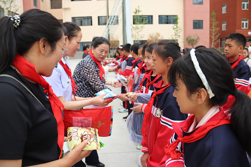 慰問組一行為50名困境兒童送上節(jié)日的祝福和禮物,勉勵(lì)他們要感恩父母、老師的教育陪伴,珍惜今天的幸福生活,從小樹立遠(yuǎn)大理想,好好學(xué)習(xí)、天天向上,長大后為建設(shè)祖國和家鄉(xiāng)貢獻(xiàn)力量。