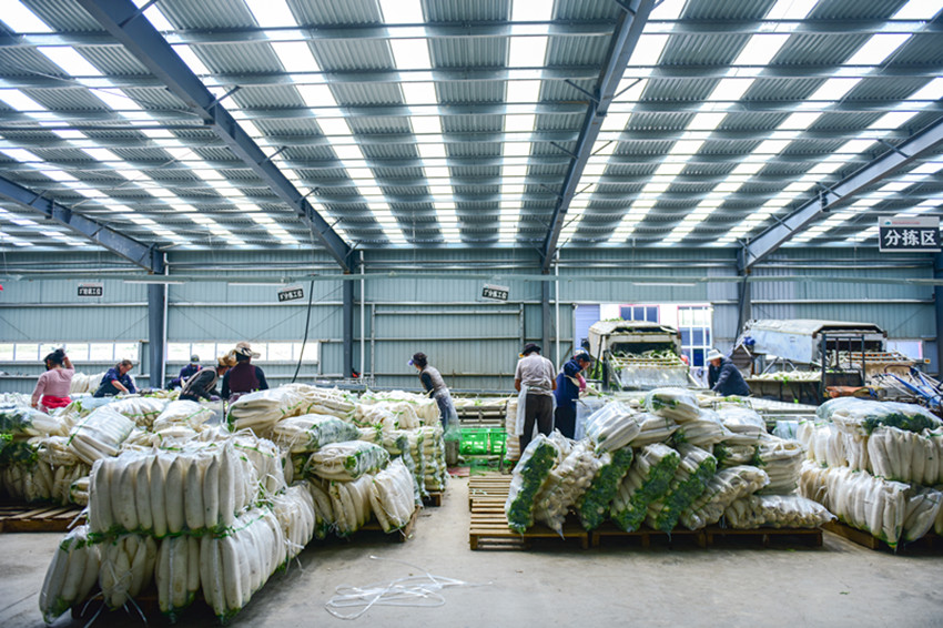 圖為雙創(chuàng)基地工人進(jìn)行蘿卜打包。