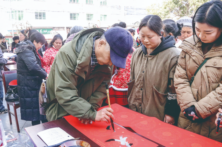 現(xiàn)場書寫春聯(lián)贈送群眾。