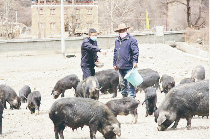 外來幫扶固然重要,但還必須解決自身“造血”功能。得知澤仁瓦吉家養(yǎng)了幾頭豬,是全村唯一的養(yǎng)豬戶,劉濤專門到他家了解情況,幫他想辦法、出點子,鼓勵他擴大養(yǎng)殖規(guī)模,同時多方溝通協(xié)調(diào),為他爭取到3萬元的免息扶持資金。2016年,澤仁瓦吉家的養(yǎng)豬場辦起來了,當年就飼養(yǎng)了100多頭藏香豬。2017年第一批豬出欄,澤仁瓦吉獲得了高達10萬元的凈利潤。