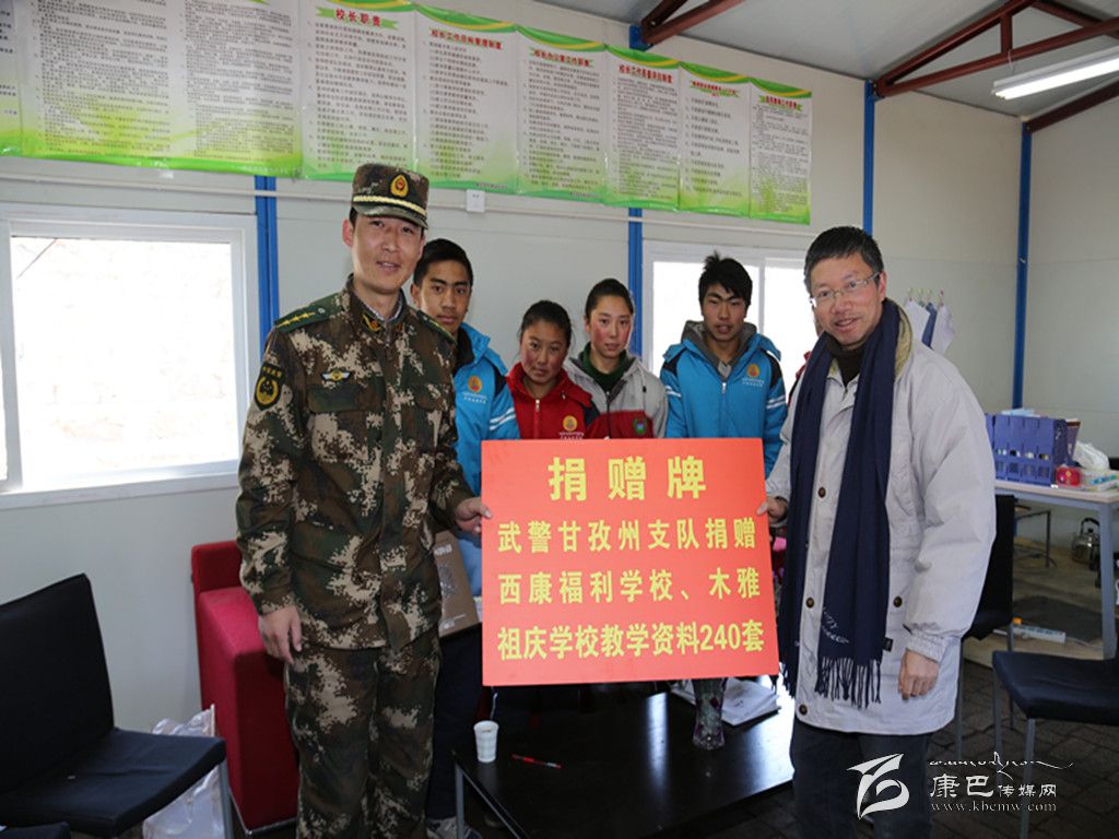 在康定縣西康福利學(xué)校、木雅祖慶學(xué)校臨時(shí)活動(dòng)板房教學(xué)區(qū)校長辦公室內(nèi),該支隊(duì)向兩所學(xué)校捐贈(zèng)了240套教學(xué)資料,并為5名結(jié)對(duì)特困學(xué)生贈(zèng)送了保暖衣。據(jù)該支隊(duì)副政委朱平孝介紹,康定“11·22”地震發(fā)生后,他們了解到兩所學(xué)校的學(xué)生全在活動(dòng)板房上課后,立即與學(xué)校取得聯(lián)系,結(jié)合實(shí)際給他們訂購了240套教學(xué)資料,用于充實(shí)學(xué)校教學(xué)。并結(jié)合部隊(duì)擔(dān)負(fù)任務(wù)和學(xué)校教學(xué)實(shí)際,將持續(xù)與學(xué)校開展愛心幫扶、國防教育、支教助學(xué)等共建共育活動(dòng)。