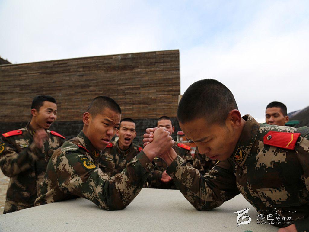 隆冬的康巴高原,早已銀裝素裹,寒氣逼人,但寒風(fēng)簌簌也擋不住訓(xùn)練場上火熱的激情,兄弟倆在眾人的歡呼聲中正在進(jìn)行100米短跑比賽。兄弟倆互不相讓,你追我趕,誰也不服輸,誰也不讓著誰,幾乎同時(shí)抵達(dá)終點(diǎn)。沒有分個(gè)高低,兄弟倆又在器械上較了勁,你做一個(gè)我就要做兩個(gè),你做兩個(gè)我就要做三個(gè)……班上的戰(zhàn)友也被兄弟倆感染著,在訓(xùn)練場上也互相較起了勁,掀起了“對抗風(fēng)暴”。