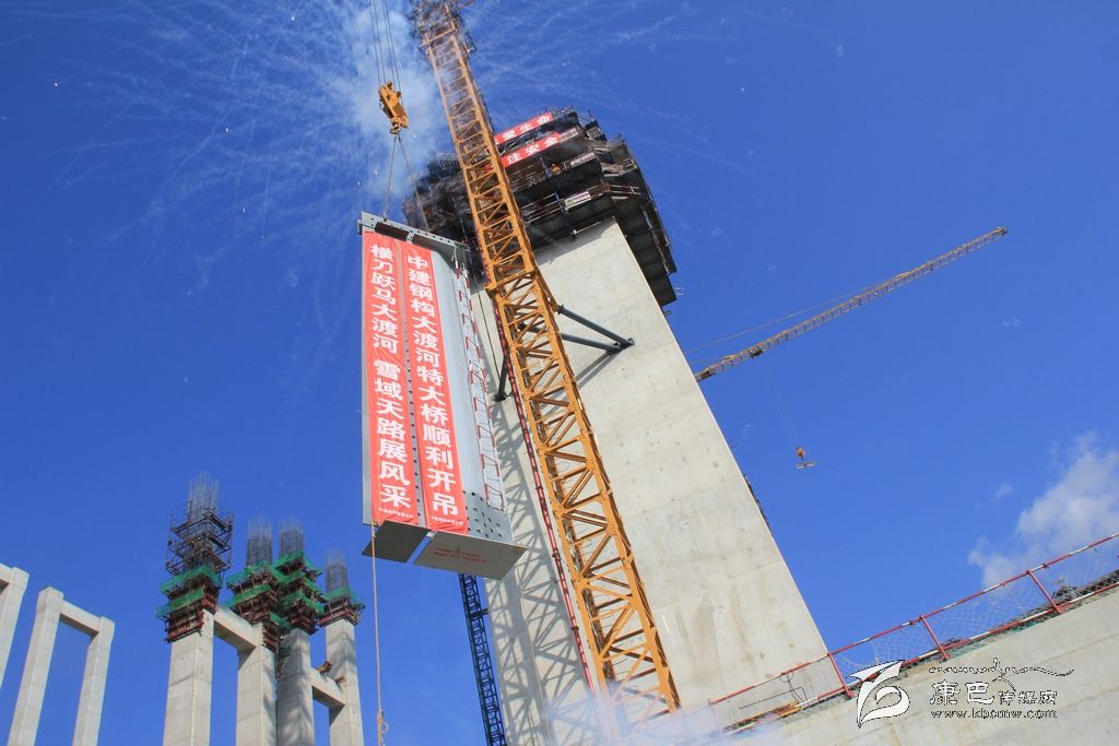 本網(wǎng)訊(高成子 劉凡森)12月8日,一根重達4.6噸、造型奇特的鋼梁緩緩升起,由中建鋼構所承接的雅康高速瀘定大渡河特大橋波形鋼腹板順利完成首次吊裝,標志著大渡河特大橋項目正式進入了多單位交叉施工的攻堅階段。大橋建成后,橋梁主塔將高達188m。
