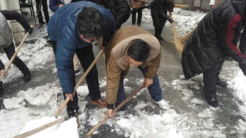 從22日上午起,記者在康定城區(qū)大街小巷看到,駐州部隊(duì)官兵以及部分單位職工緊急行動(dòng)起來(lái),清掃積雪。根據(jù)州委、州政府的安排,州直屬機(jī)關(guān)工委也于22日向州級(jí)部門、省屬單位各基層黨組織發(fā)出緊急通知,并逐一劃分責(zé)任片區(qū),組織干部職工集中清理辦公區(qū)、住宿區(qū)、街道積雪,確保道路安全暢通。 按照劃分的責(zé)任片區(qū),州級(jí)機(jī)關(guān)行動(dòng)迅速,到處可以看見(jiàn)干部職工揮動(dòng)鐵鏟除雪的忙碌身影。23日上午10點(diǎn)過(guò),記者看到從藏族小學(xué)到州委黨校的路段上,州委黨校和州檔案局的干部職工正在清除積雪。“大雪影響了這段路上居民的出行,積雪很深,給清掃帶來(lái)極大困難。州直機(jī)關(guān)工委號(hào)召機(jī)關(guān)單位干部職工積極行動(dòng)起來(lái)清理積雪,這是與人方便,也是與自己方便。積雪清掃干凈后,走在路上不需要擔(dān)心被滑倒。”州委黨校教師扎西說(shuō)。