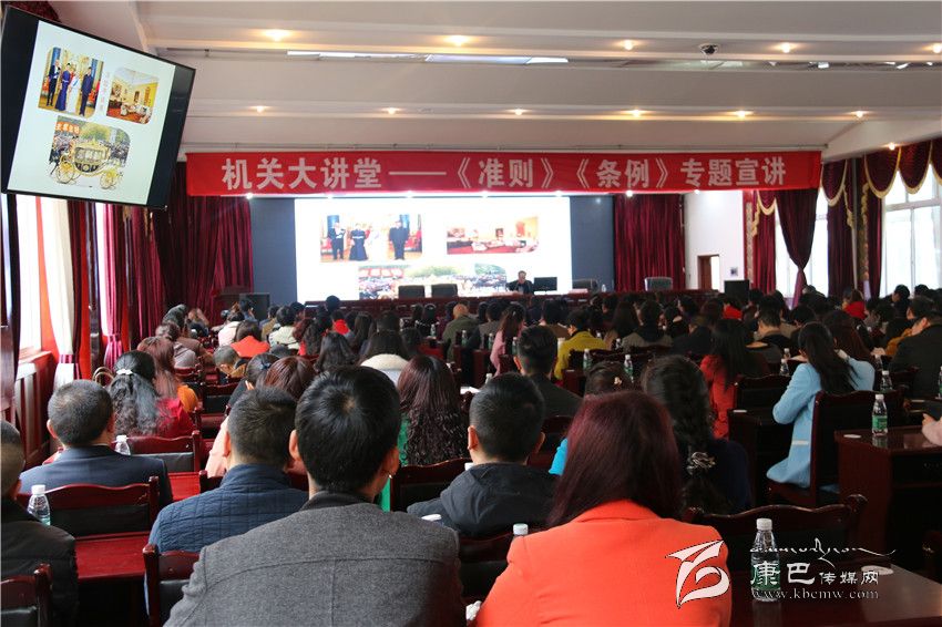 本網(wǎng)訊(記者 宋志勇 文/圖)為推動州直機(jī)關(guān)各基層黨組織和廣大黨員干部深入學(xué)習(xí)、宣傳、貫徹兩項法規(guī),準(zhǔn)確把握“兩項法規(guī)”的內(nèi)涵和精神實質(zhì),真正把黨規(guī)黨紀(jì)的權(quán)威樹起來、立起來、執(zhí)行到位。4月6日上午,州直工委舉辦“機(jī)關(guān)大講堂”——貫徹學(xué)習(xí)《中國共產(chǎn)黨廉潔自律準(zhǔn)則》和《中國共產(chǎn)黨紀(jì)律處分條例》專題宣講會,來自州級機(jī)關(guān)、省屬單位科級以下黨員干部共300多人聆聽了講座。