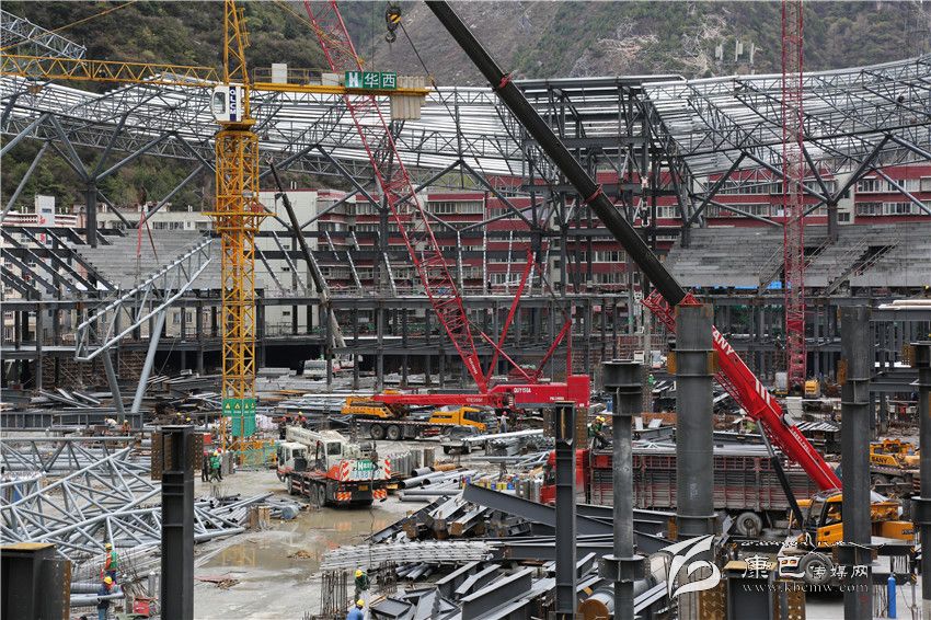 從規(guī)劃上看,高大上的新北門體育場堪稱甘孜州的“鳥巢”。由四川省第十三建筑公司承建的康定北門體育場改造工程,工程總投資2.4億元。截止目前,已完成投資1.4億元。停車場和看臺已初具規(guī)模;95%的鋼材已運達建設(shè)現(xiàn)場。據(jù)工程負責人介紹,北門體育場改造工程每天有300多人在施工,預(yù)計7月初大部分工程可以完工。