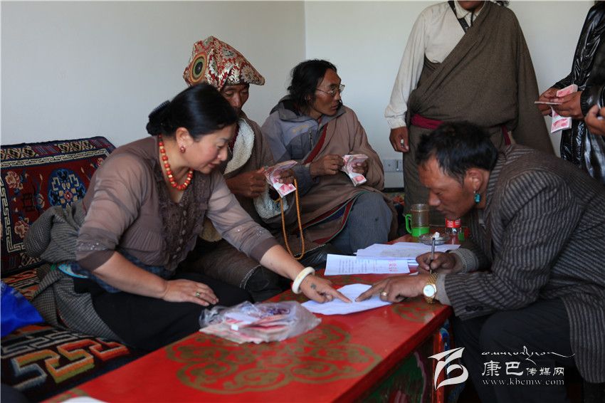 色達(dá)縣基層干部現(xiàn)場兌現(xiàn)易地扶貧搬遷補助款。