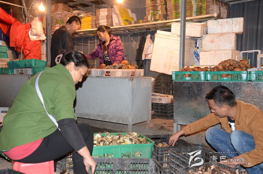 商販正在分揀松茸。