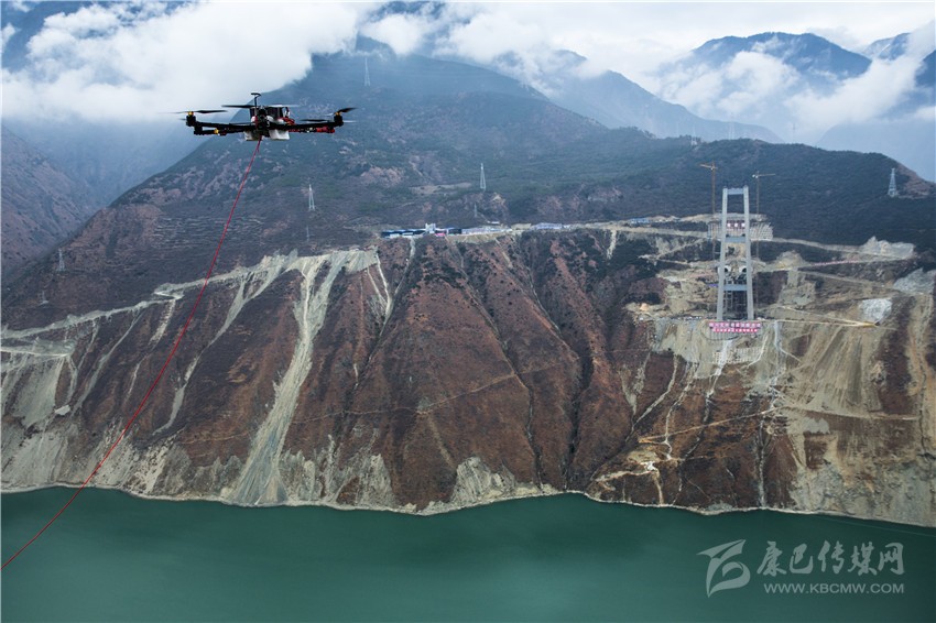 雅康高速C15合同段一分部總工程師張磊說,河谷兩岸立好橋墩,施工隊員運用無人機(jī)技術(shù),先把一根較細(xì)的繩子“飛穿”在兩側(cè)橋墩,再運用這第一根繩索,運送較粗繩索,最后運送鋼繩,建立橫跨兩岸的1600多米長的“貓道”——施工隊員屆時彎腰在這里施工?!肮と藨以诤拥郎峡帐┕ぃ矔粺o處不在的大風(fēng)所包圍。”