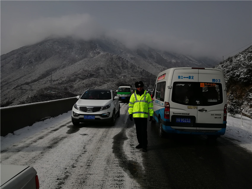 王洛讓和同事是看老天爺“臉色”工作,老天爺一“變臉”,就是王洛讓和同事最忙碌的時(shí)候。2013年9月,折多山下了一天一夜的雪,積雪深至膝蓋,道路中斷無法通行。為了除雪搶險(xiǎn)和疏導(dǎo)交通,王洛讓和同事們在折多山上奔走3天3夜,在冰冷的雪地上幫助過往司機(jī)掛防滑鏈、攙扶有高原反應(yīng)的游客、為堵車的駕駛員送上熱水,免費(fèi)為游客提供高原應(yīng)急藥品。