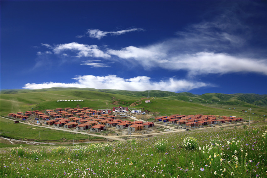 坐落在鮮花叢中的爐霍縣宗塔鄉(xiāng)牧民定居點。楊孝康 攝