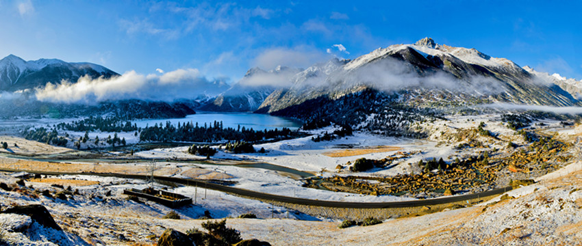 在德格采訪的最后一天,攝制組前往新路海進(jìn)行拍攝。清晨的高原氣溫略低、空氣清冽,攝制組的記者們卻個個精神抖擻,盡情享受著高原絕美的風(fēng)光景色。