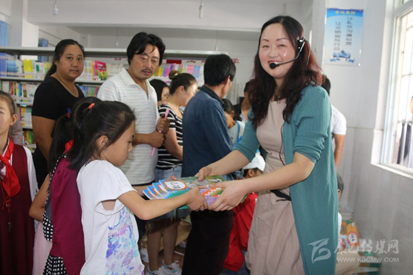老師正在給同學(xué)們發(fā)新書。