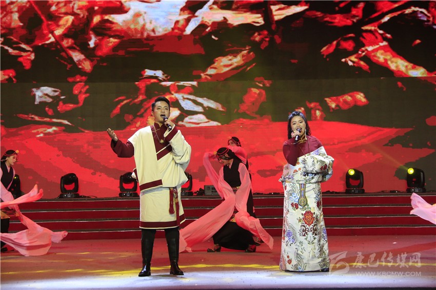 隨后以三個“新”字為主題的篇章,更是彰顯了民族風(fēng)情、甘孜風(fēng)格、時代風(fēng)貌。挖掘民族素材、彰顯民族文化,甘孜歌舞團(tuán)以格薩爾傳說為“藍(lán)本”,推陳出新表演的《格薩爾仲肯》,讓民族文化熠熠生輝;民族文化需傳承,少年強(qiáng)則甘孜強(qiáng)。德格縣中學(xué)少兒則噶表演的《吉祥頌》,讓人感到后生可畏,贏得陣陣掌聲;富有激情的朗誦、珠聯(lián)璧合的配樂,《甘孜與祖國相約出發(fā)》讓現(xiàn)場觀眾真切地感受到了盛世中華,真情贊美幸福美好的新生活;歌曲大聯(lián)唱《如歌歲月》通過不同時代的代表性歌曲,唱出了甘孜兒女愛祖國、愛家鄉(xiāng),感黨恩、思奮進(jìn)的真摯情懷;由州歌舞團(tuán)和爐霍、丹巴、德格、巴塘等縣藝術(shù)團(tuán)聯(lián)袂上演的《幸福大家庭》,既有漢族歌舞《祝福祖國》、藏族舞蹈《放牧人》、蒙古族舞蹈《送親》、彝族舞蹈《彝家情》、回族舞蹈《花兒》,更是彰顯了民族團(tuán)結(jié)的大主題,為我州創(chuàng)建全國民族團(tuán)結(jié)進(jìn)步示范州擂鼓助威。