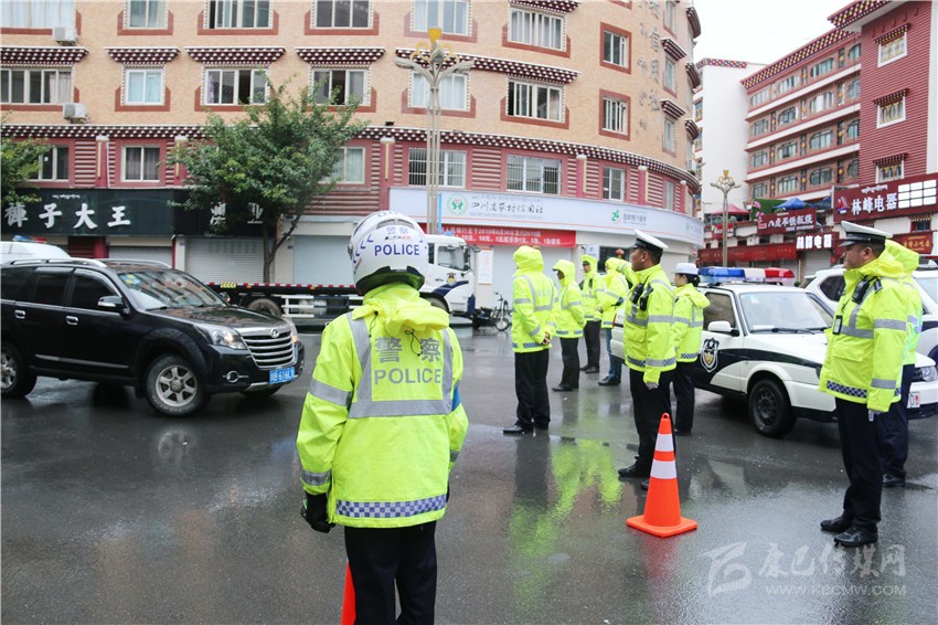 康定市交警大隊(duì)人員正在州文化館點(diǎn)位為過(guò)往車(chē)輛服務(wù)。