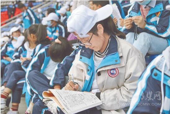 記者隨機(jī)采訪了其中一位正在復(fù)習(xí)功課的同學(xué),她叫胡建花?!敖裉煸缟蟻淼猛υ绲模荒芾速M(fèi)候場時(shí)間,基本上同學(xué)們都會隨身帶上書本,休息的時(shí)候就拿出來看看?!闭劶芭啪氉铍y的事時(shí),胡建花表示,幾乎每個(gè)節(jié)目都要變換背景,他們不僅要牢記噴繪彩旗的變化順序,還要做到整齊劃一,才能有良好的演出效果,這對大家的默契度是個(gè)重大的考驗(yàn)?!白蛱觳逝诺臅r(shí)候在大屏上看到我們方陣的鏡頭,我們都震驚了,真的沒想到我們能做到這么好?!币慌缘耐瑢W(xué)余昊玲滿臉驕傲地對記者說,“雖然訓(xùn)練動(dòng)作有點(diǎn)枯燥,但是一想到能在建州70周年的慶祝大會中留下自己的印記,就覺得非常值得!”
