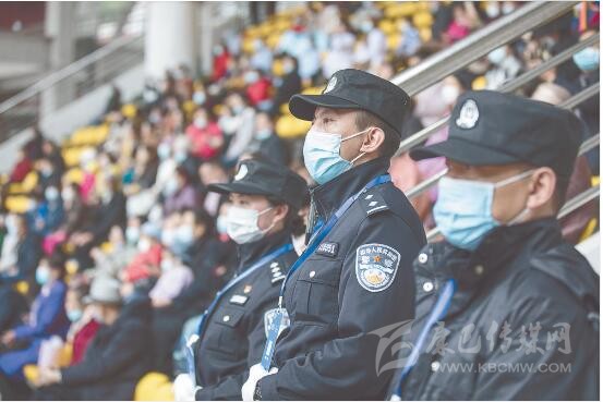 “請出示你的身份證,配戴好口罩?!薄按蟾缒阏义e(cuò)方向了,你是往那邊走?!薄鞍荩愕奈恢檬峭筮呑?。”……在北門體育場,民警除了安保執(zhí)勤以外,還幫助行動(dòng)不方便的群眾找尋座位,或?yàn)樽稍兊娜罕姶鹨山饣蟆?/p>