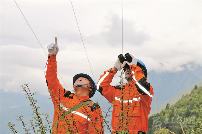 共產(chǎn)黨員服務(wù)隊(duì)正在巡視保電線路。
