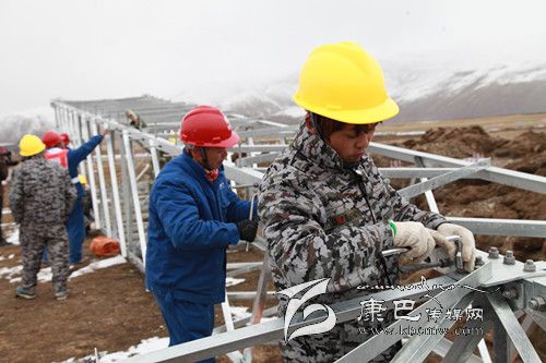 石渠縣海拔高,長(zhǎng)冬無(wú)夏,空氣含氧量?jī)H為成都平原的45%,電力建設(shè)面臨著“高原高寒缺氧、生態(tài)環(huán)境脆弱、凍土區(qū)沼澤區(qū)施工”等世界性難題。在這里走路稍微快一點(diǎn)都要大口喘氣,更何況在高山雪地上施工,搬運(yùn)建材,其施工難度可想而知。石渠至洛須110KV工程是國(guó)網(wǎng)成都供電公司承擔(dān)“電力天路”工程項(xiàng)目中唯一一條110kV電壓等級(jí)線路工程,是連接石渠變電站和在建的110kV洛須變電站的主要電力通道,線路全長(zhǎng)為64.268km,新建鐵塔187基,沿線海拔高度為3300~4800m,線路多在雪山脊梁及斜坡走線。4月的石渠高原,依然是冰天雪地,寒風(fēng)呼嘯,在石渠至洛須110KV線路87基塔基澆筑現(xiàn)場(chǎng),這里海拔4500多米,然而這里卻是一片熱火朝天的場(chǎng)景,一頂頂黃色安全帽下,急促呼吸冒出的熱氣讓每一個(gè)人的面目更加模糊?,F(xiàn)在內(nèi)地正是春暖花開,春意盎然的季節(jié),而我們的施工現(xiàn)場(chǎng)確實(shí)冰天雪地,為了讓廣大農(nóng)牧民早日用上電,四川電建工人們克服高寒、缺氧等惡劣自然條件,正在抓緊施工。110kV線路有的建設(shè)段施工人員靠相互扶持摸索上山,有的施工點(diǎn)一個(gè)來(lái)回要走6個(gè)多小時(shí),材料、工器具都必須靠驢隊(duì)及索道運(yùn)輸。為了搶工期節(jié)約時(shí)間工程建設(shè)者克服嚴(yán)重的高寒缺氧等惡劣的自然條件吃住在雪山上,累了、呼吸困難時(shí)吸口氧,渴了吃一把身邊的“雪糕”。到今年4月30日,“電力天路”石渠境內(nèi)工程進(jìn)度已完成工程總投資的40%。